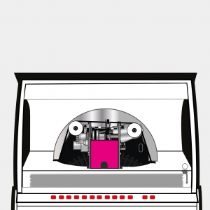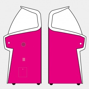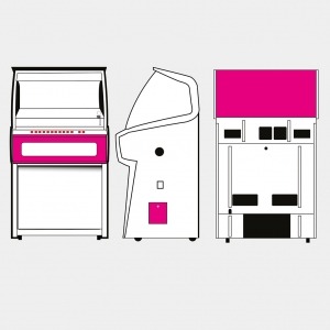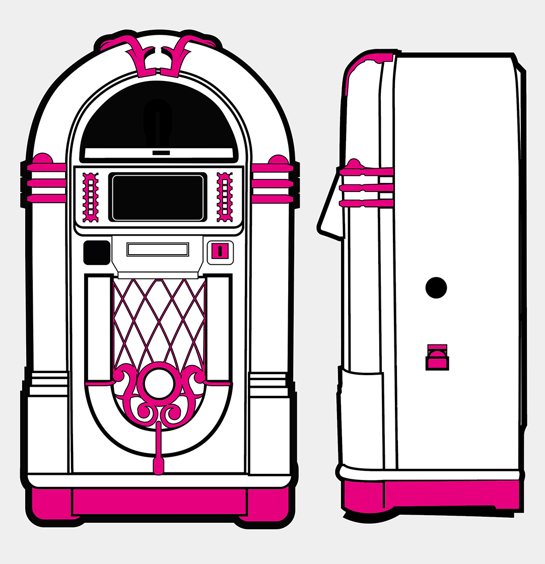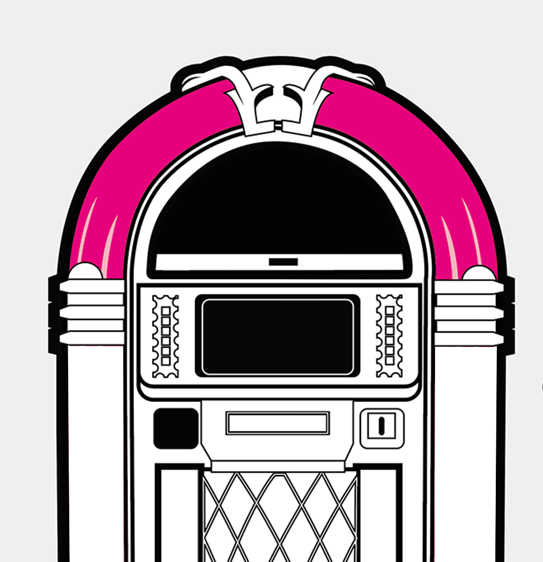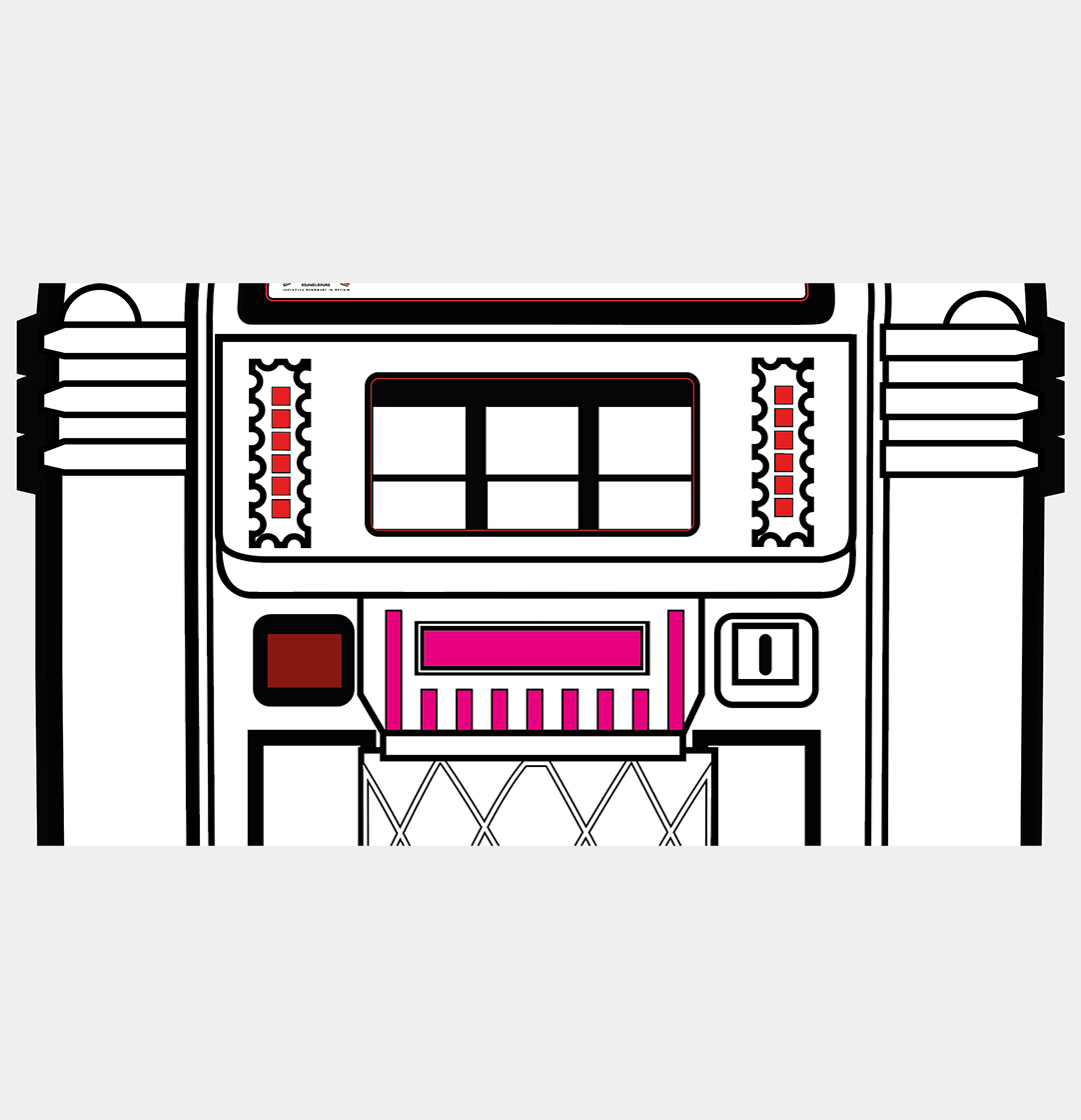 Each product page only shows options which are relevant to the jukebox model you are looking at, so different products will show different options. Each ‘Custom Shop’ option is identified using a graphic, showing the relevant jukebox (in black and white) and the custom component in pink. Here’s a few ‘Custom Shop’ examples from our popular Rocket and 1015 models: These are just a few examples of where customisation can occur on a jukebox: