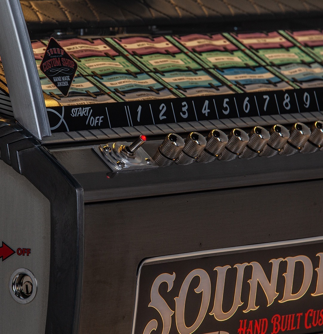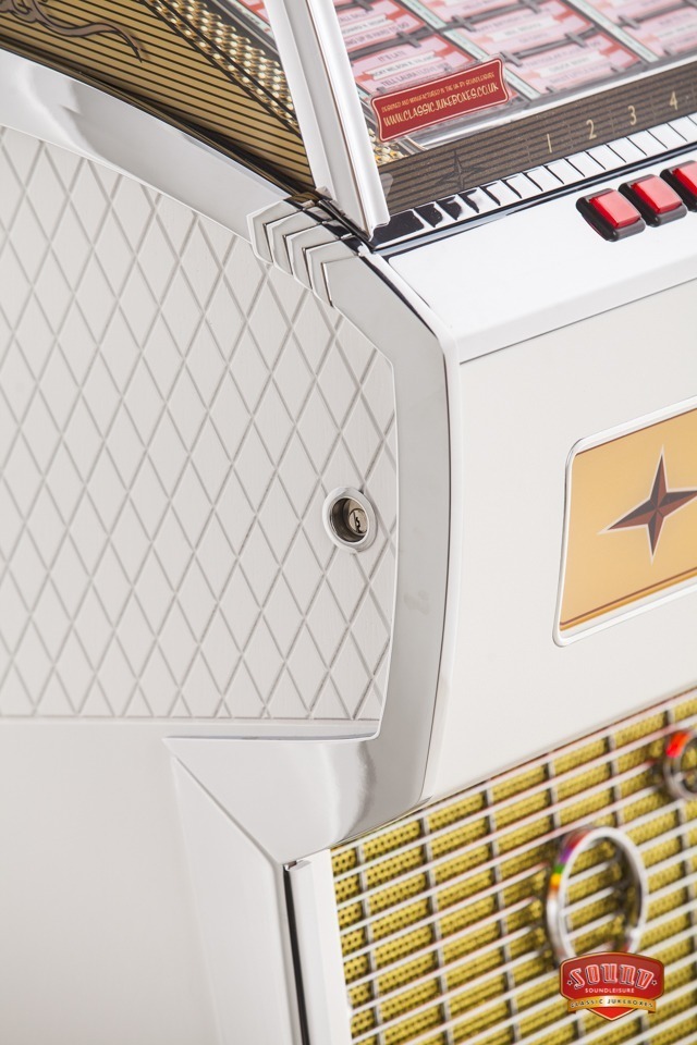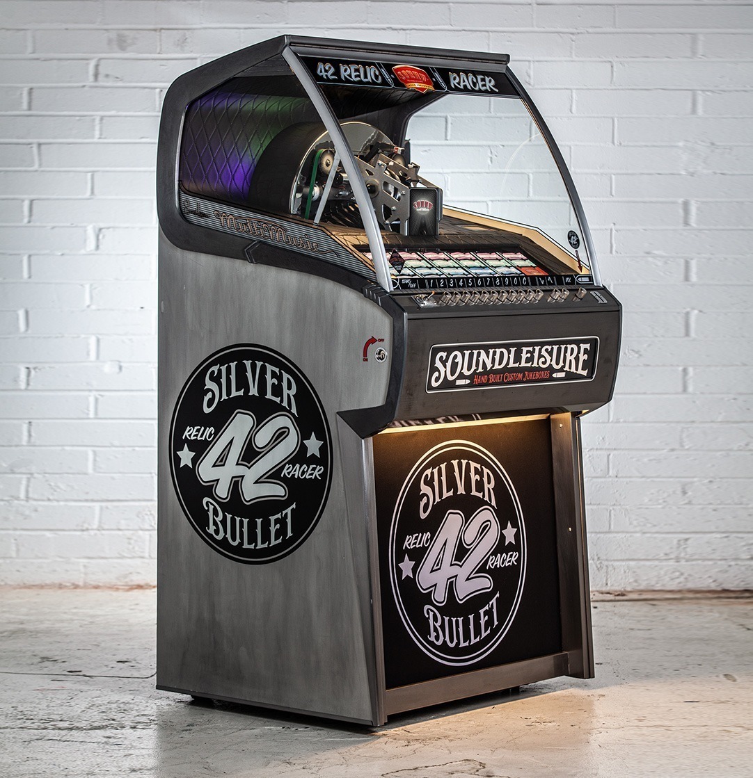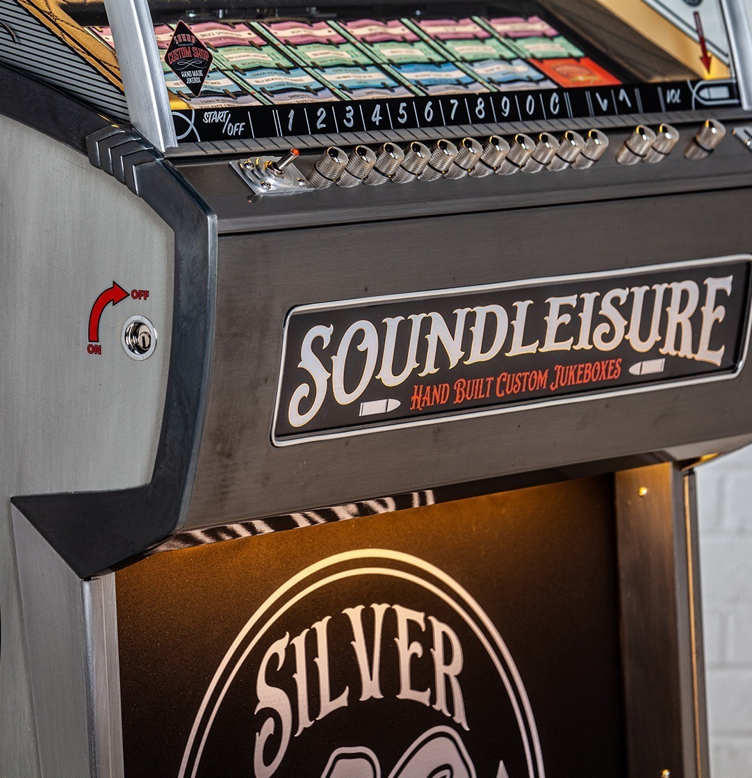 We can customise most aspects of a jukebox, but to make things easier for our clients we’ve included ‘Custom Shop’ options for the most common customisations on all our jukeboxes product pages. To view these, just select ‘Configure & Buy’ on any jukebox product page. You can then select: