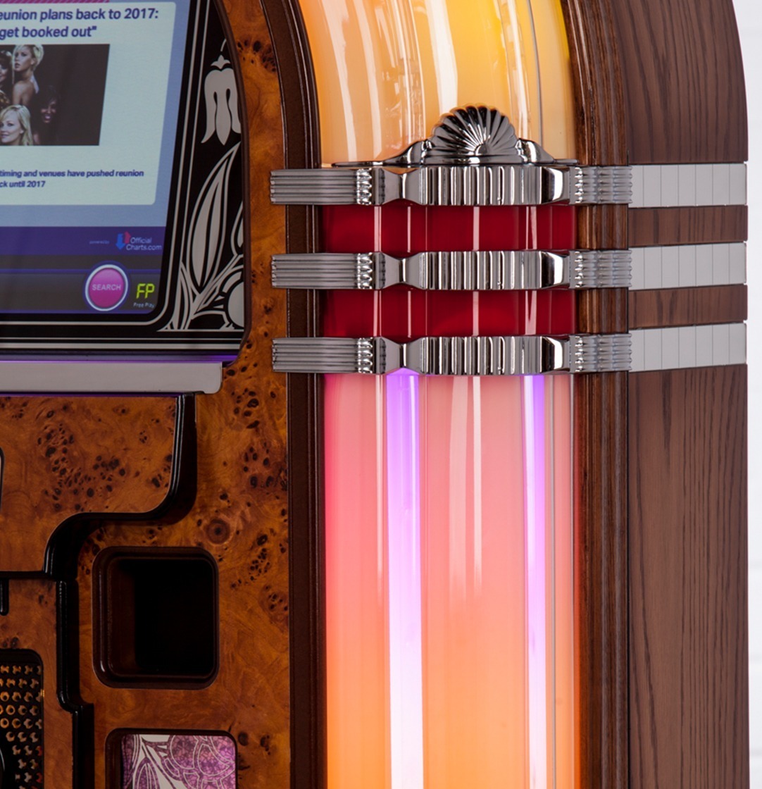 Our ‘Custom Shop’ make it possible for you to customise any aspect of your jukebox to make it truly unique. Where ‘Custom Shop’ options are available for a product, these will be displayed when you click the ‘Configure & Buy’ button on relevant product pages (along with options for the Cabinet Finish, Add-Ons and Accessories.)