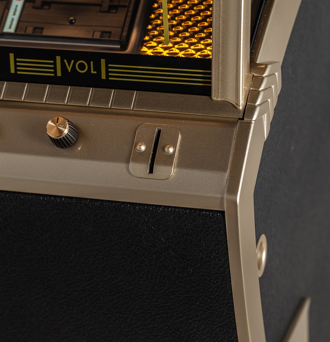Marshall have been producing world leading amplifiers since 1962 and their iconic range continues to play an integral role in the global music scene. A shared passion for music and manufacturing brought Sound Leisure and Marshall together in a truly unique collaboration, resulting in the development of this incredible, officially licensed Classic Jukebox. Marshall fans will love this Rocket’s unique features – classic gold castings and genuine Marshall supplied components including knobs, fret cloth, piping, logos and the instantly recognisable tolex material which wraps the jukebox cabinet. With stunning looks, undisputed attitude and a striking presence, this machine is a talking point and outstanding centrepiece for any home or location. There is even one sitting proudly in the green room at Marshall’s sound stage in the UK, where artists and bands visit to test and setup their amps before heading out on tour!