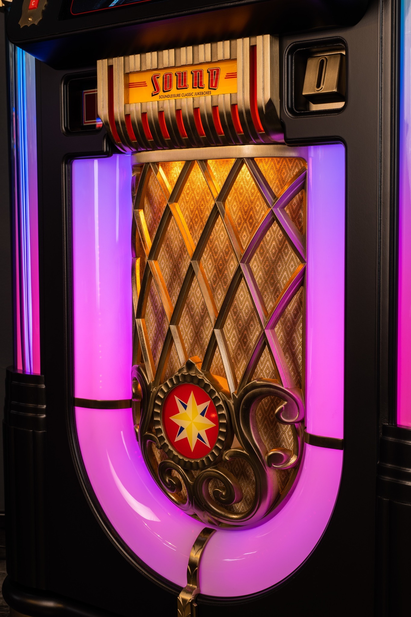 Sound Leisure is the world’s leading classic jukebox manufacturer, producing unique, hand-built jukeboxes from their UK base. We put 40 years of dedication, passion, and experience into making every Sound Leisure Classic Jukebox, and we’re happy to stand behind the claim that these are the best jukeboxes made anywhere in the world. As well as supplying a selection of games room products and accessories, we also offer the only bespoke jukebox build service in the world, producing one-off or low-volume customized jukeboxes based on our extensive range of cabinets, models, and Custom Shop options. Pick from our wide range of customizations to truly make your jukebox unique, from a simple custom nameplate to an entirely bespoke jukebox design. Look out for the Custom Shop options when configuring any of our jukeboxes.